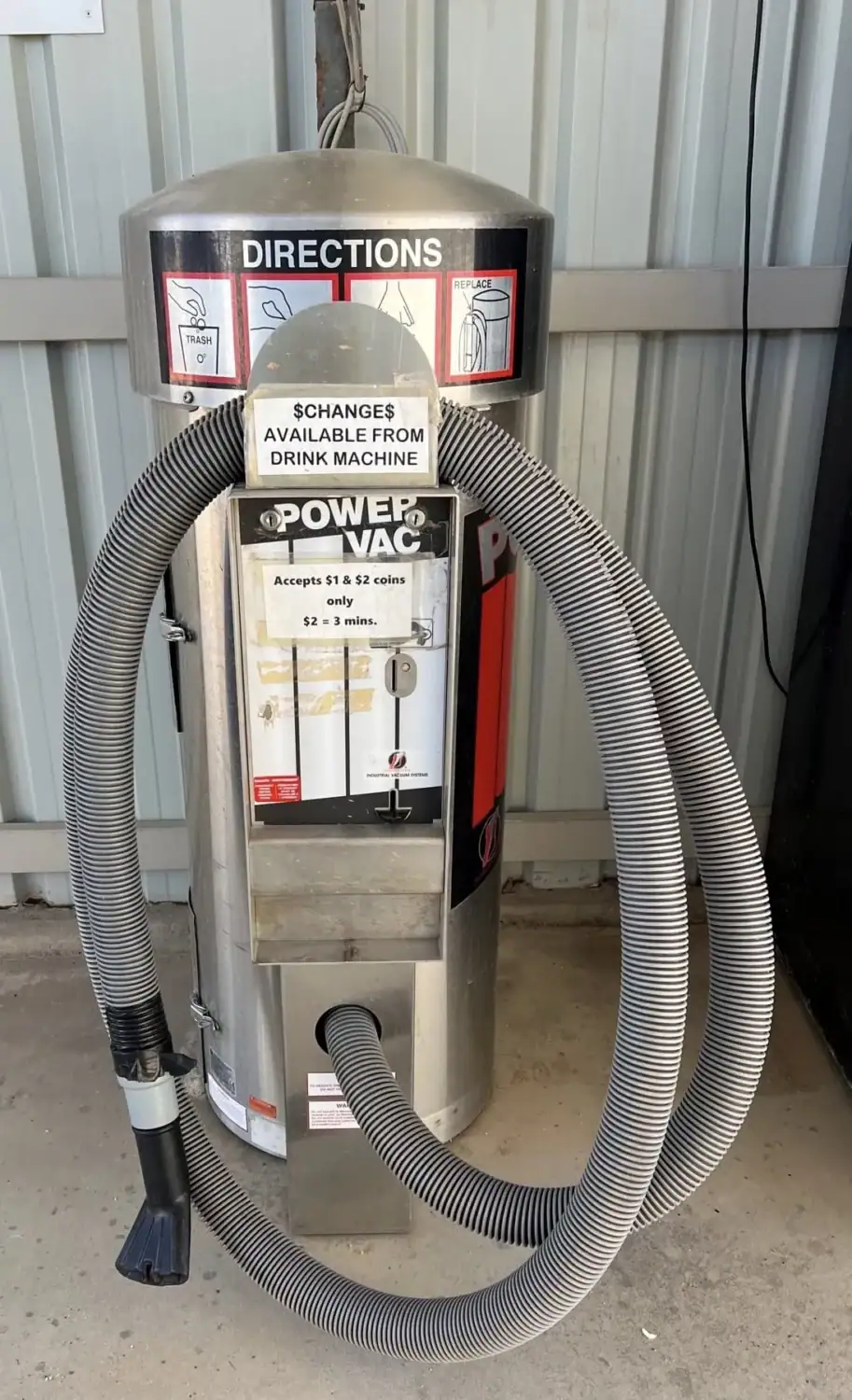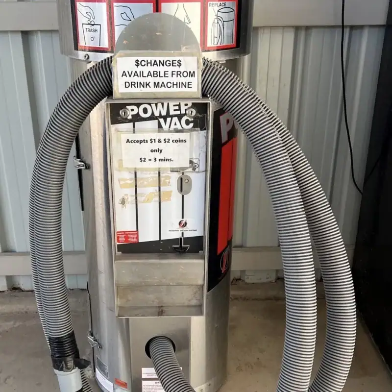 There is a vending machine for drinks, towels, glass cleaner, smelly trees and ArmorAll protectant wipes.