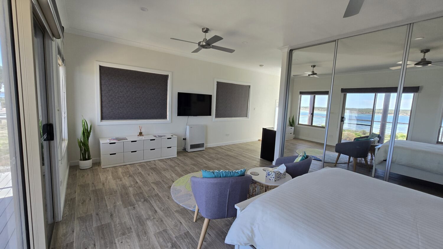 Complete with a queen size bed and linen, exceptional wardrobe space, TV, Bar Fridge, generous sized bathroom including towels.